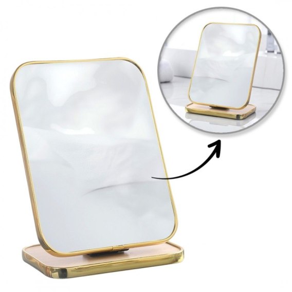 Lusterko kosmetyczne stojące drewniane, prostokątne, złota ramka 15 x 20cm L19