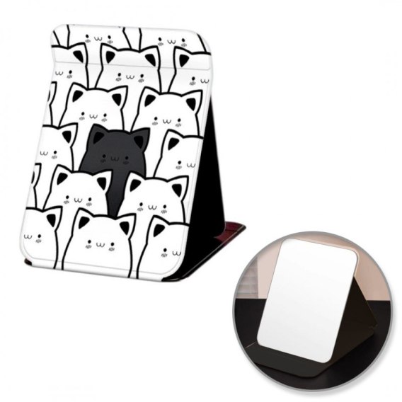 Lusterko kosmetyczne z ekoskóry, otwierane, stojące duże, kotki 15 x 20cm L24