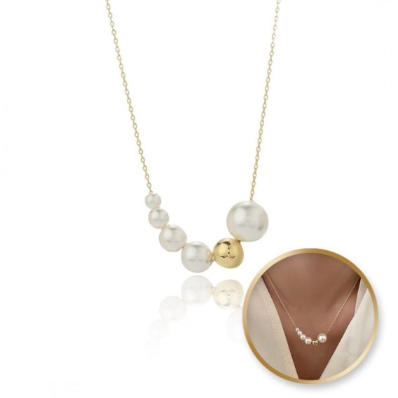 Naszyjnik stal szlachetna pozłacana 14k złotem, PERŁY NST2171
