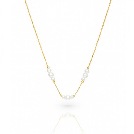 Naszyjnik stal szlachetna pozłacana 14k złotem, Perełki NST2216