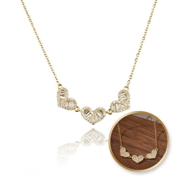 Naszyjnik stal szlachetna pozłacana 14k złotem, SERCA cyrkonie NST2168