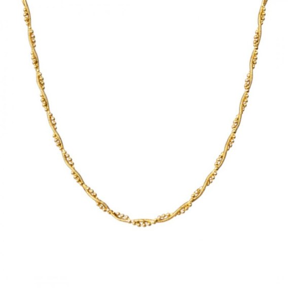 Naszyjnik stal szlachetna pozłacana 14k złotem, podwójny, zawijany, kulki NST2257