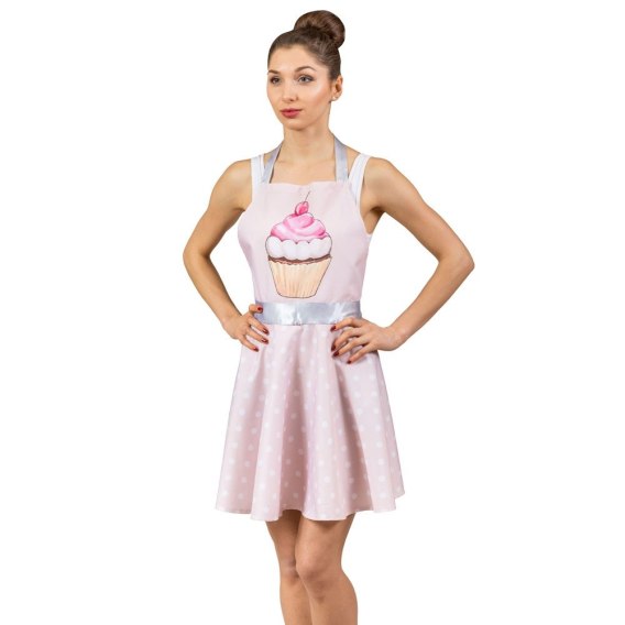 Wyjątkowy, kobiecy krój podkreśli figurę gospodyni, natomiast apetyczna różowa babeczka na fartuszku podkręci apetyt i wywoła uśmiech na twarzy.