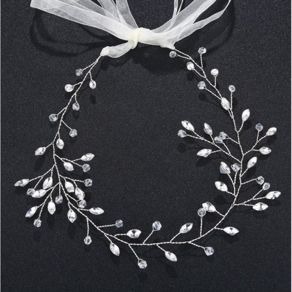 Delikatna opaska wykonana ręcznie z kompozycją kryształkowo - perłowąProsta, ale bardzo efektowna ozdoba do włosów.Rozmiar uniwersalny
