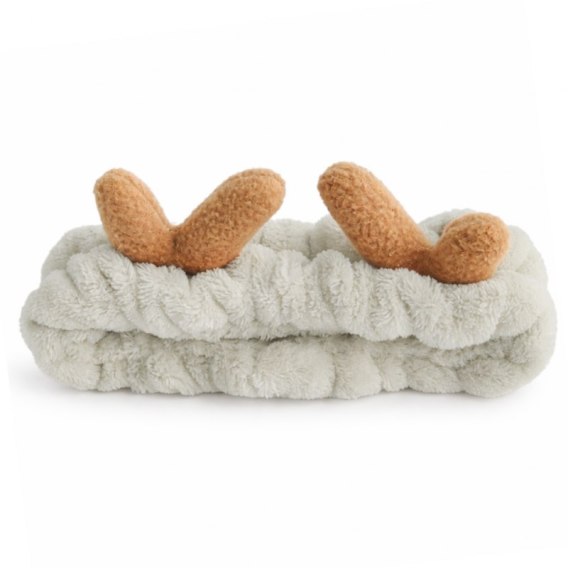Opaska kosmetyczna uszka renifera ozdobna, beżowa z brązem O378K