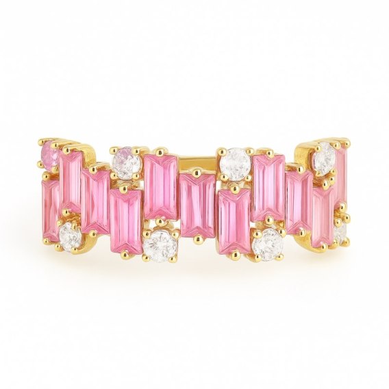 Pierścionek pozłacany stal chirurgiczna platerowana złotem, różowe cyrkonie PST853, Rozmiar pierścionków: US6 EU11