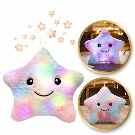 Poduszka w kształcie Gwiazdki Róż Ombre LED, piękna welurowa 40x35 cm PDS20