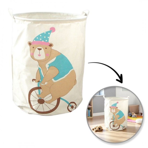 Pojemnik na zabawki kosz, worek na pranie MIŚ NA ROWERZE 35x45 cm OR2WZ122