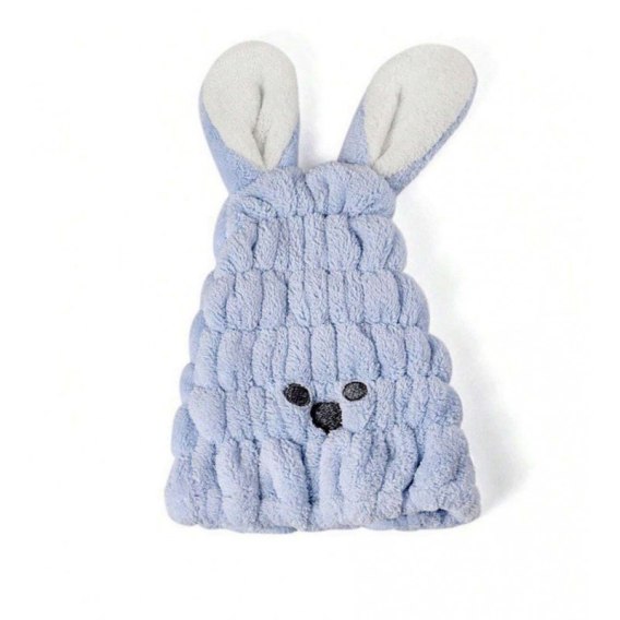 Ręcznik, turban do suszenia włosów - niebieski króliczek Kompaktowy i świetnie wchłaniający ręcznik do włosówPochłania 20% więcej wody, niż zwykły ręcznik.