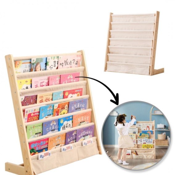 Regał, 6 poziomowy stojak, organizer na książki z kieszonkami 79 x 60 cm SZ45