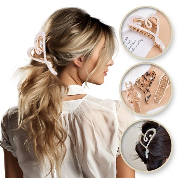 Spinka do włosów, klamra metalowa masa perłowa biała XL 12x6cm SP342B