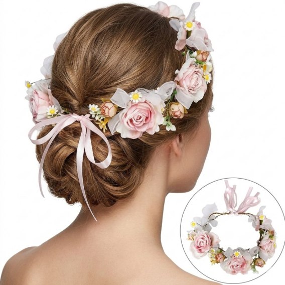 Romantyczny wianek na głowę z wysokiej jakości kwiatów sztucznych.