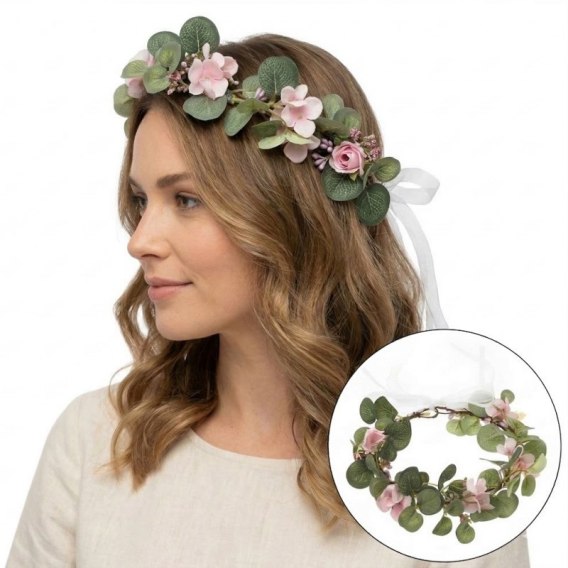 Wianek, opaska do włosów z kwiatów, delikatny wianuszek BOHO W86