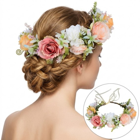 Romantyczny wianek na głowę z wysokiej jakości kwiatów sztucznych.