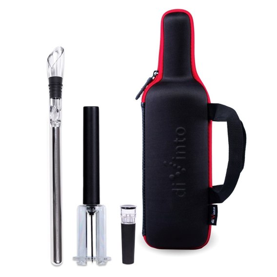 Każdy element zestawu znalazł się w nim ze względu na jego użyteczność. Korkociąg ciśnieniowy umożliwia szybkie i bezwysiłkowe otwarcie butelki pod wpływem ciśnienia. Chłodzący sopel utrzymuje trunek w niskiej temperaturze i ułatwia nalewanie wina do kieliszków. Stoper z pompką zabezpiecza napój przed rozlaniem i pozwala zachować świeżość wina na dłużej, usuwając powietrze z butelki.