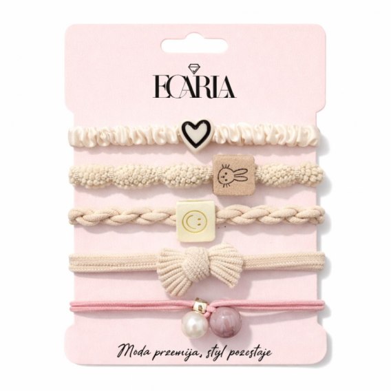 Zestaw frotek gumek 5w1 na plakietce SMILE, serce beż GUM193