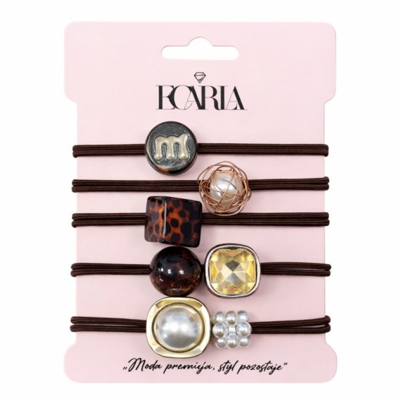 Zestaw frotek gumek 5w1 na plakietce, brązowe z kamieniami, złote GUM186