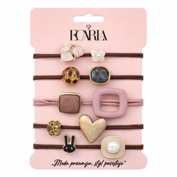 Zestaw frotek gumek 5w1 na plakietce, brązowe z kamieniami, złote SERCE GUM183