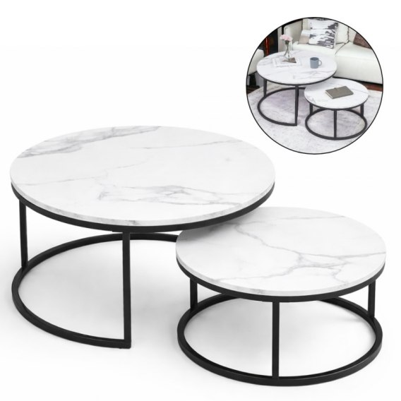 Zestaw okrągłych stolików kawowych 2w1 biały marmur 60 i 80 cm STL14