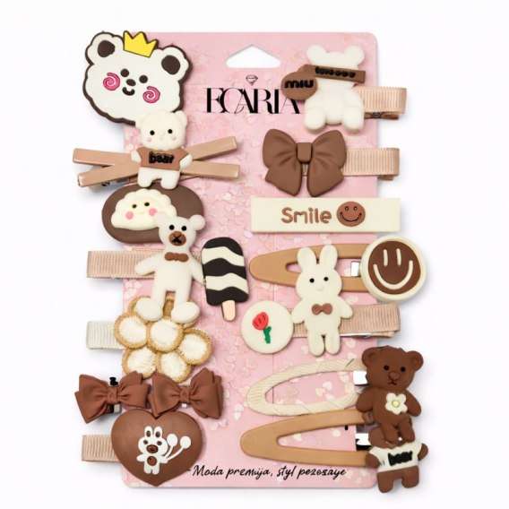 Zestaw pakiet 14w1 spinek wsuwek do włosów, MISIE, beż, krem SP447