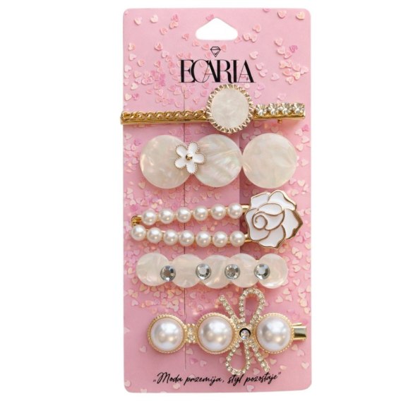 Zestaw pakiet 5w1 spinek wsuwek do włosów, białe, perły, kwiat, kokarda SP457