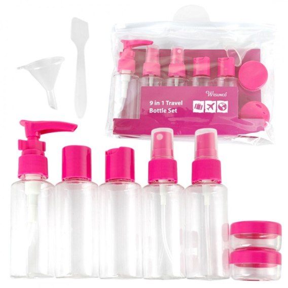 Zestaw pojemniczków i akcesoriów podróżnych 9w1 fuksja KS136F